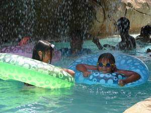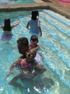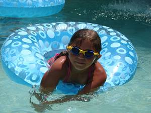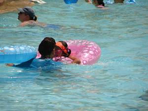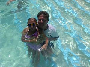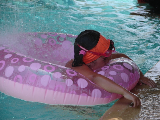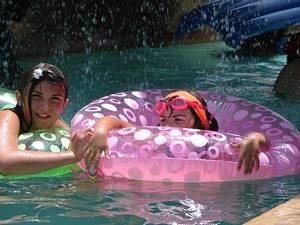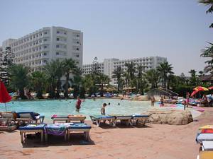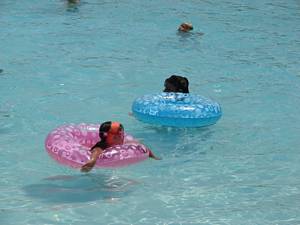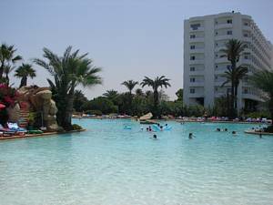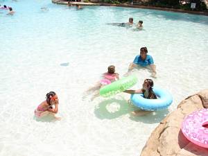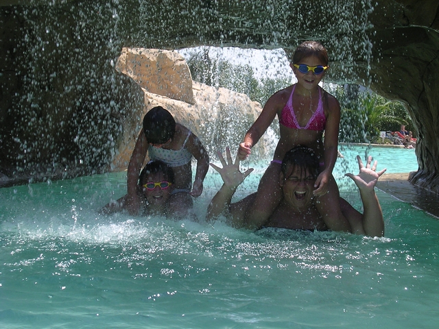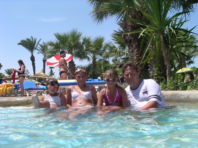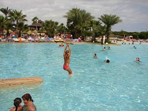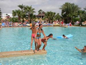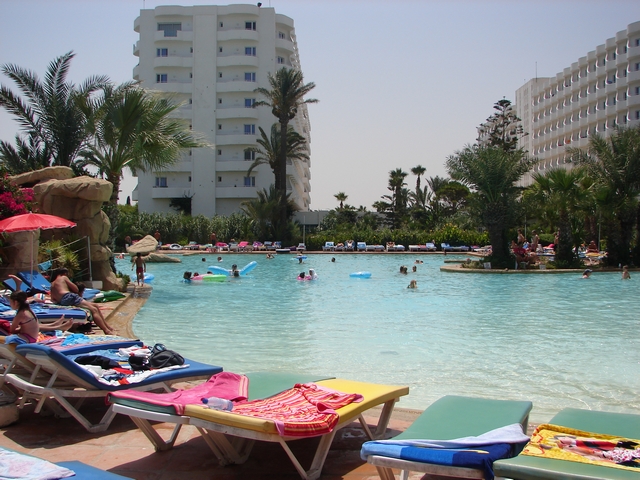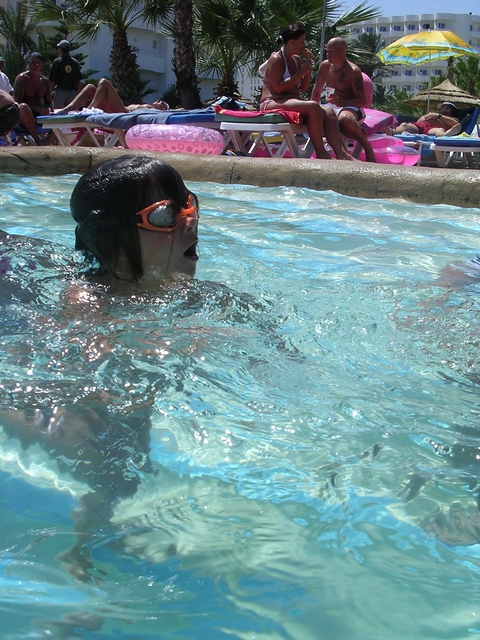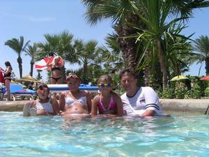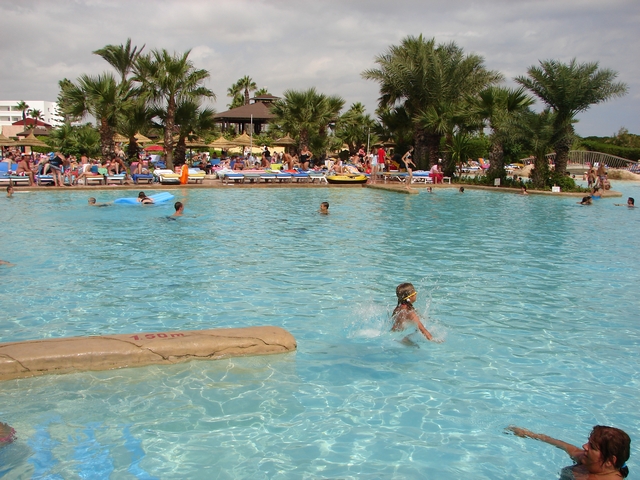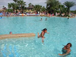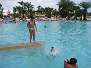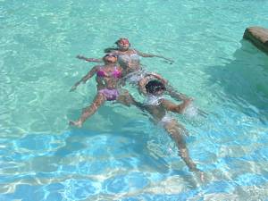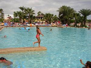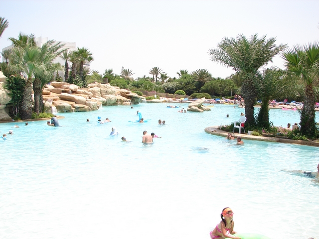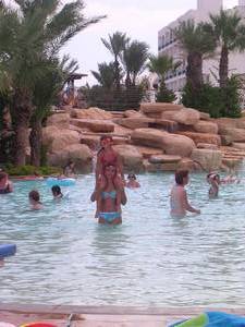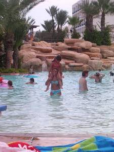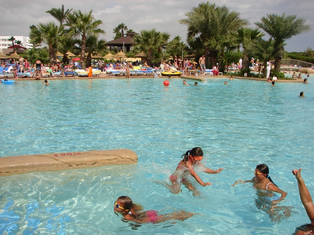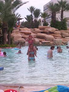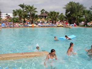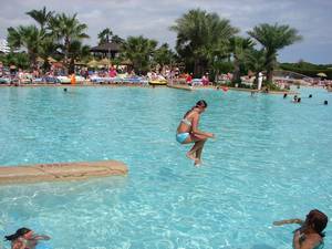 In & around the swimming pools (all four of them).